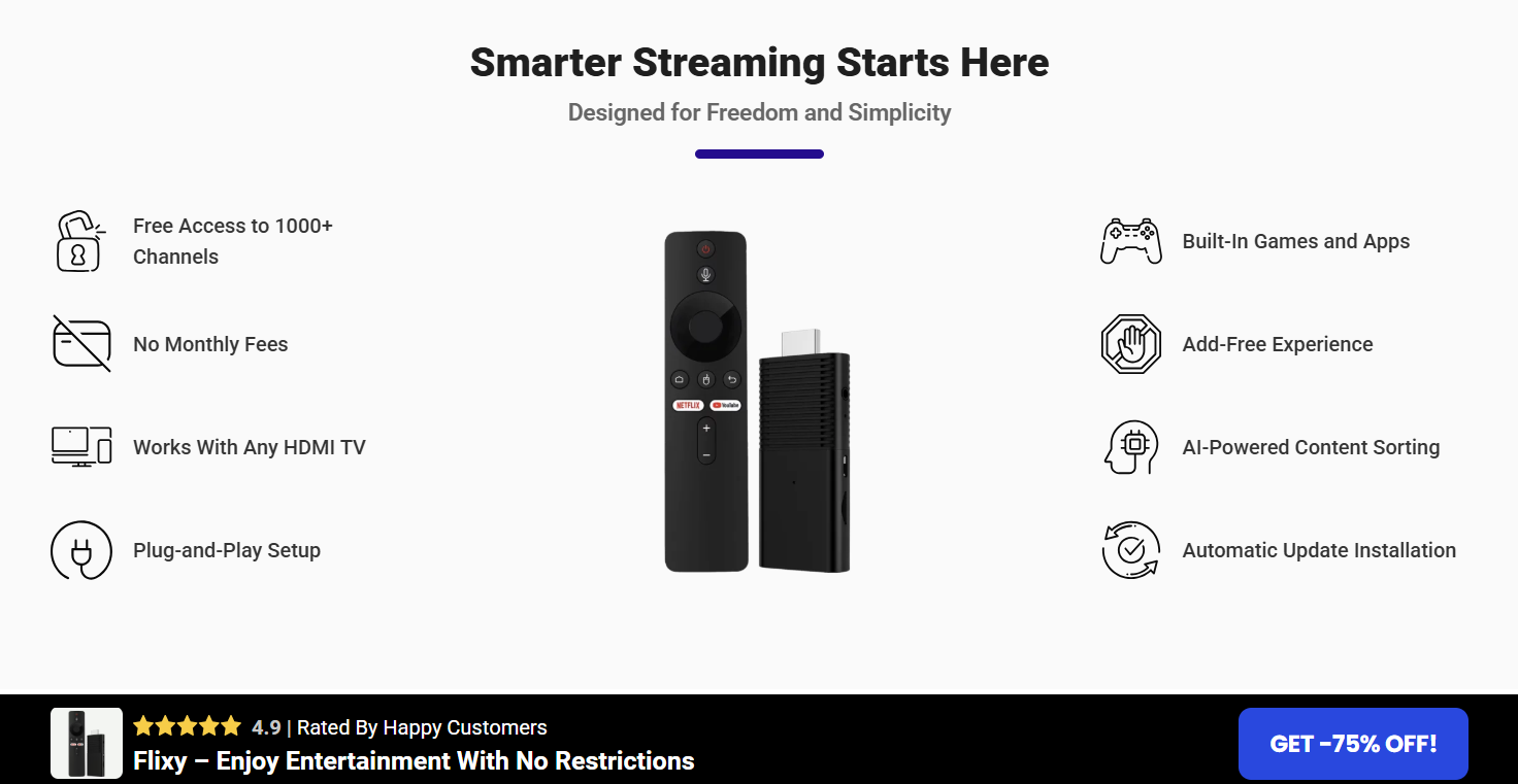 Because of these features, the Flixy Stick Smart TV USB is often promoted as an affordable entertainment upgrade for households that want to enjoy modern streaming services without replacing their television.